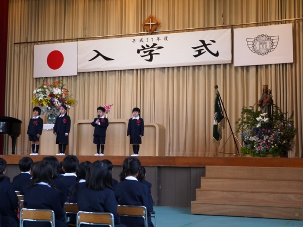 4人の代表あいさつは、はきはきとして上手でした。とても楽しみな新入生たちです。