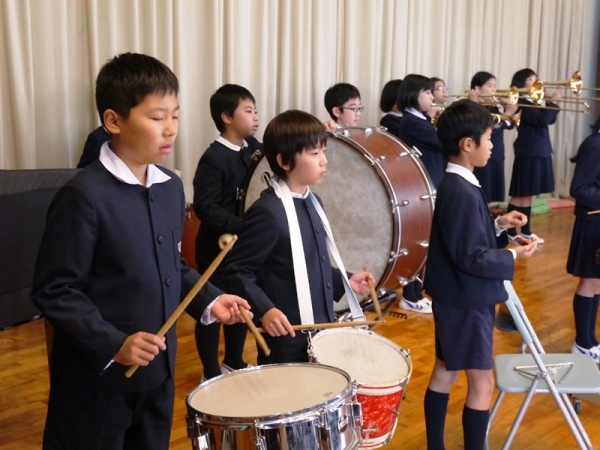 今朝は朝礼で全校のみんなの前で演奏をしました。