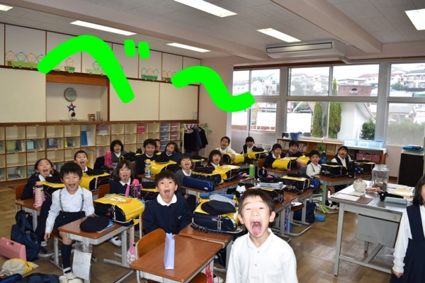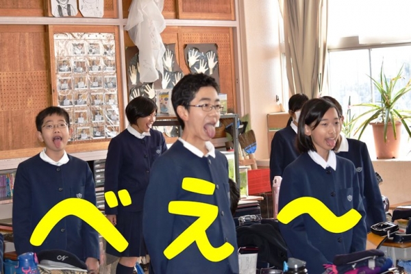 南山小学校では、帰りの会の終わりころになると、各教室から「あー、いー、うー、べえー。」と聞こえてきます。これを10回くらい繰り返すと「先生さようなら。皆さんさようなら」と元気のよいあいさつをして 帰っていきます。