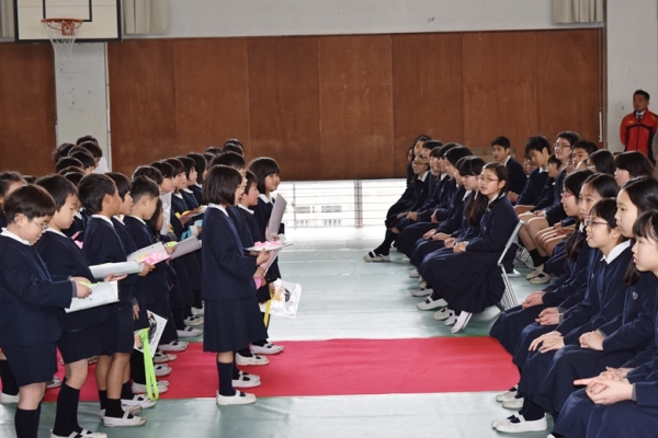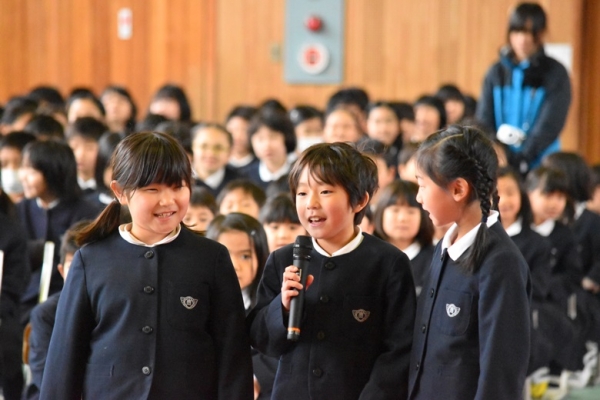 児童会主催の『6年生、お別れ集会』がありました。新たに運営委員になった5年生を中心に各学年が協力してあいさつや出し物をしてくれました。特に出し物をしてくれた3学年のみなさん【ジェスチャーゲーム:5年生】【ダンス:3年生】【メッセージボード:1年生】とても嬉しかったです。お返しに【365日の紙飛行機】を歌いました。とても楽しい時間をありがとうございました。