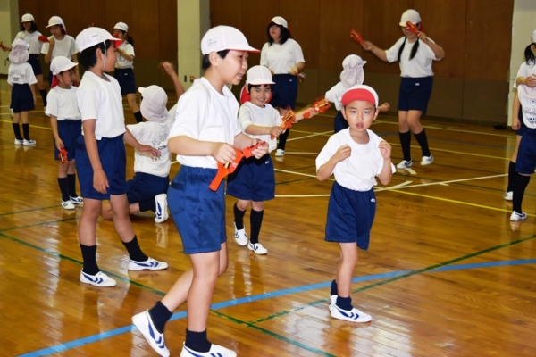 6年生のお兄さん、お姉さんに踊りを教えてもらいます。