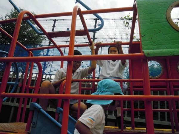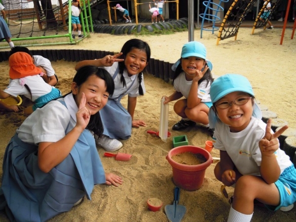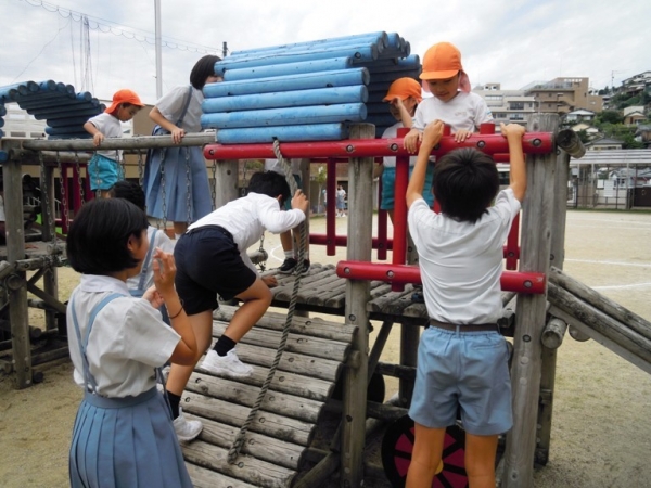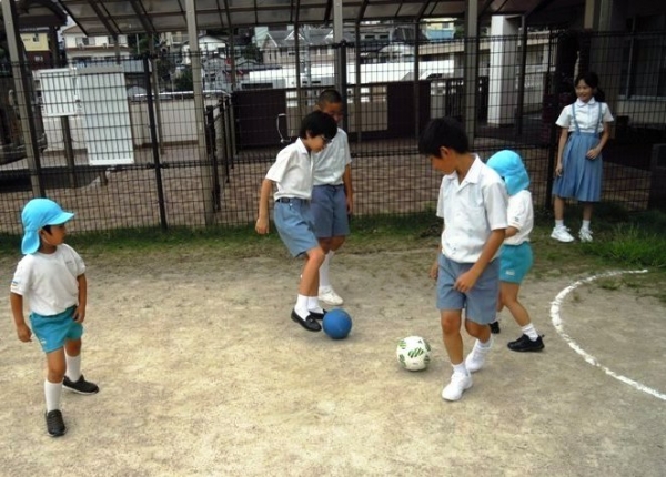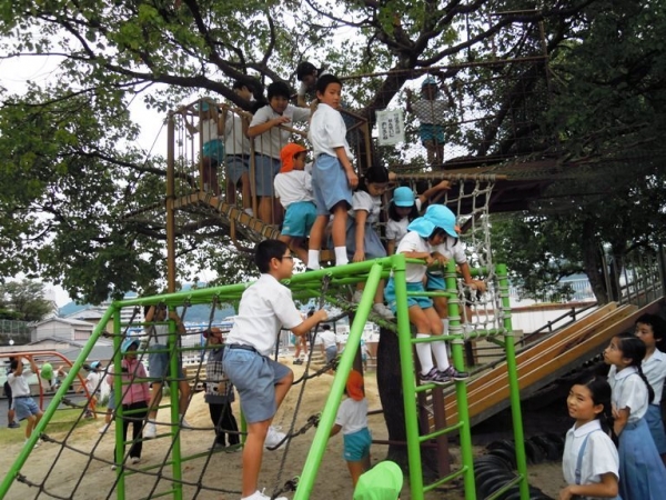 10月4日,子ども園のお友達と園庭で遊びました。最初は,ドキドキしていましたが,とても楽しく遊んでいました。