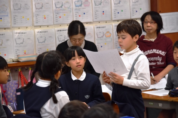 隣どうしで話し合った後、今度はクラス全体で深め合います。ここでも自分の考えを聞いてもらいたくてたまらない子どもたちの積極的な発表がたくさん見られました。