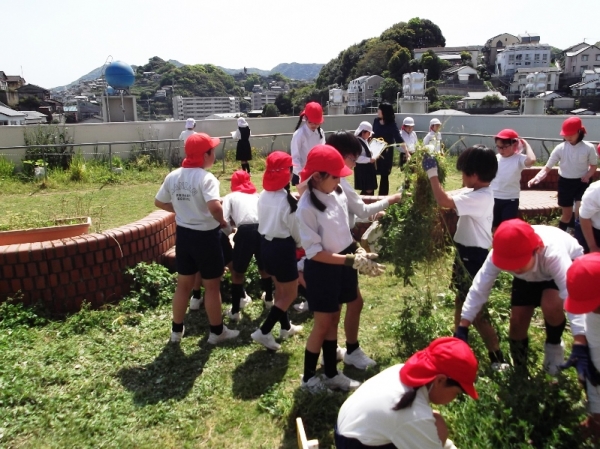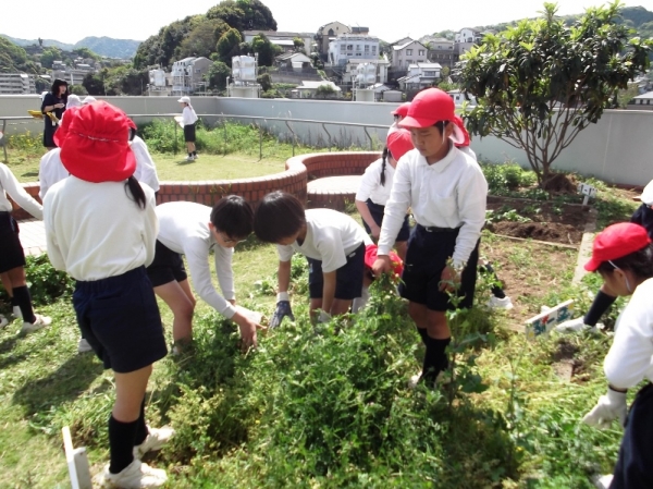 4年生みんなで花壇の整備をしました。