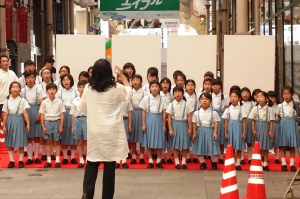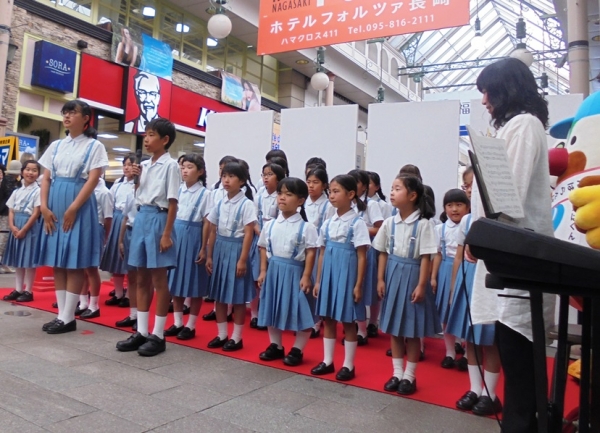 6月9日(土)浜の町のアーケードで環境月間のイベントがありました。 私たちコーラス部は館kひょうげっかんオープニングセレモニーで歌をうたいました。たくさんの人たちに「もってこーい!」とアンコールもいただき、喜んでもらってとても嬉しかったです。 帰りにはいろいろなブースで環境について勉強して帰りました。