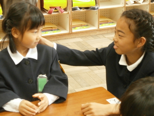 次の日から「お姉ちゃん、一緒にお庭に行こう!」「お兄ちゃん、早く遊びに来てくれないかなぁ。」「お姉ちゃんと一緒に遊びたいから、教室で待ってる。」と6年生との関りを心待ちにし、とても喜んでいる1年生でした。