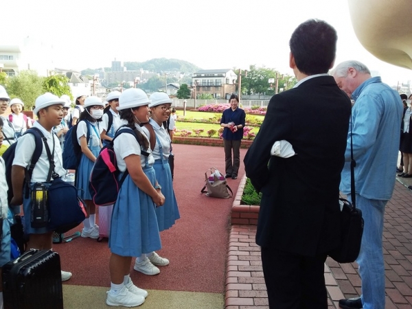 ①いい天気に恵まれ修学旅行へ出発です。7:45 出発式!神父様の祝福を受けて行ってきます。8:00 出発です!3日間の旅の無事をお祈りください。②学校を出発して最初の休憩サービスエリアです。みんな元気です。これから吉野ヶ里歴史公園へ行きます。