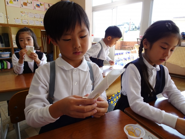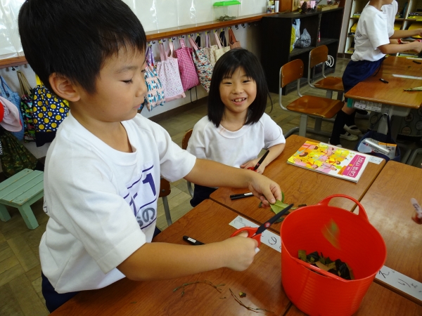 身近にある自然物を使って楽しく遊んだり、美しい作品が作れることを経験した1年生でした。