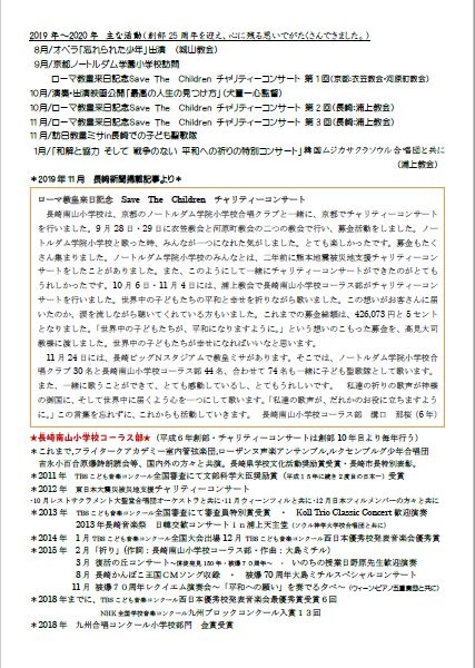 コーラス部からのお知らせです♪3月8日(日)午前10時から南山小学校隣のカトリック西町教会にてチャリティーコンサートを行います。1年生から6年生のみんなで愛をこめて歌います。是非お越しください!