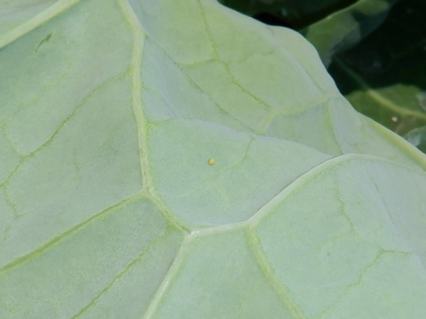 ②5月7日(晴れ)今日もキャベツの葉のうらに、黄色いものがあるよ。