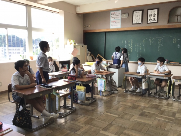 今回は「お家の人に学校生活のことを知らせよう」ということで話し合いました。今年は保護者の方に学校においでいただけない日々が続いているので、自分たちが日々頑張っている「掃除の様子」「クラブの様子」「係の活動」「みんな遊びの様子」「授業・学習の様子」について伝えることに決まりました。その中の「授業・学習の様子」は動画にまとめました。(その他については本にまとめ各自持ち帰りました。)日々、様々なことを楽しく頑張る4年2組の様子です。どうぞご覧ください。