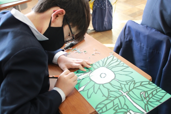 6年2組 図画工作 「版から広がる世界」(カラー版画)