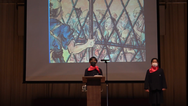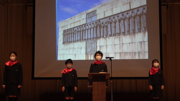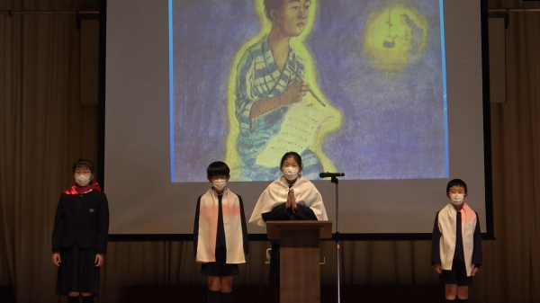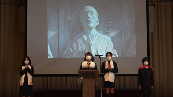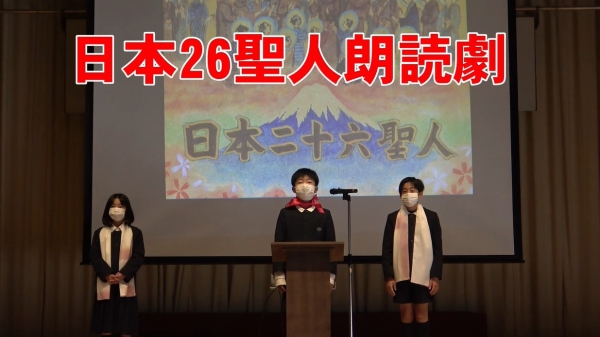 26聖人朗読劇を行いました。今年度は新型コロナウイルスの感染状況を踏まえ、事前に撮影したものを録画・編集し、全校で視聴しました。26聖人の想いを伝えるためたくさん練習してきた5年生。その思いは全校生徒に伝わったことでしょう。
