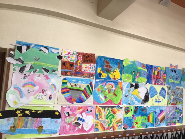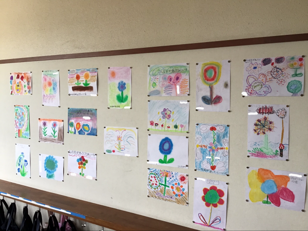 いろとりどり、にぎやかで元気いっぱいの南山小学校です。廊下を歩くと、作品を作ってくれた友達のすてきな心が伝わってくるようです。1年生「おひさまにこにこ すきなものいっぱい」2年生「 ふしぎなたまご」3年生「カラフルフレンド」「きれいな春の花」4年生「 こんな花があったらいいな」これからどんな作品ができるのか、楽しみです。
