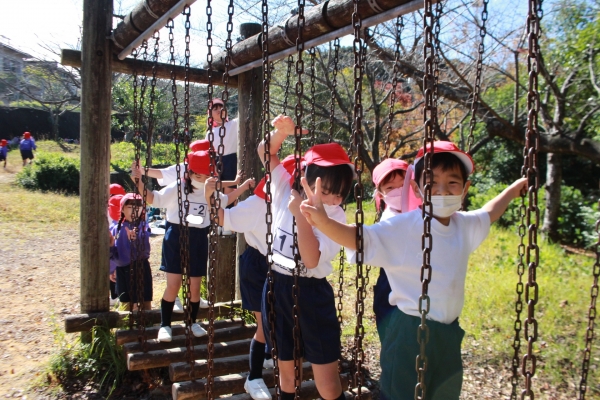 鍛錬遠足に行きました♪1.2年生は長与の天満宮公園まで歩いていきました。最後まで元気よく歩いた子どもたち。公園に着いてからは、遊具や持ってきたボール等を使って思いっきり遊びました。