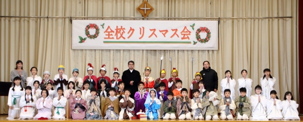 12月2日の4年生による全校クリスマス会のあとには、お母さま方が鈴の音を鳴らしながら、各教室を回りお菓子のプレゼントを届けてくださいました。2階の正面玄関には、宗教委員会が準備した馬小屋があります。また、図書ボランティアのお母さま方が準備してくださったツリーもあります。図書室にも、かわいいツリーや壁面の飾りをつくってくださいました。待ちに待ったクリスマス、24日の夜のミサのとき、教会の馬小屋にイエス様のご像がそっと置かれました。いつでも教会でお祈りすることができます。