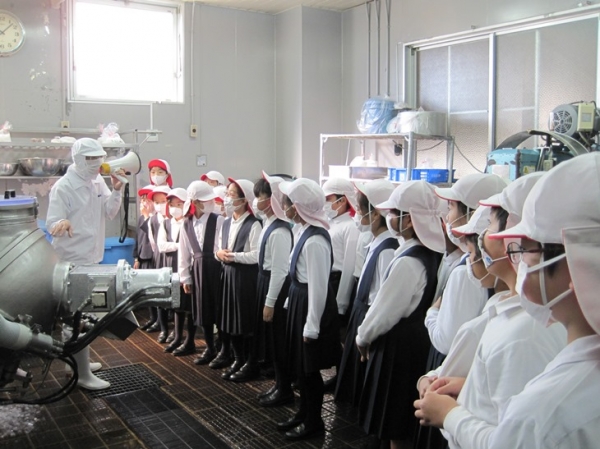 10月28日(火)に、まるなかかまぼこ工場へ、見学に行ってきました。おいしいかまぼこを作る工夫や、かまぼこをつくるための材料を教えてもらいました。また、かまぼこを作る機械もたくさん見せてもらいました。最後にかまぼこのお土産もいただきました。