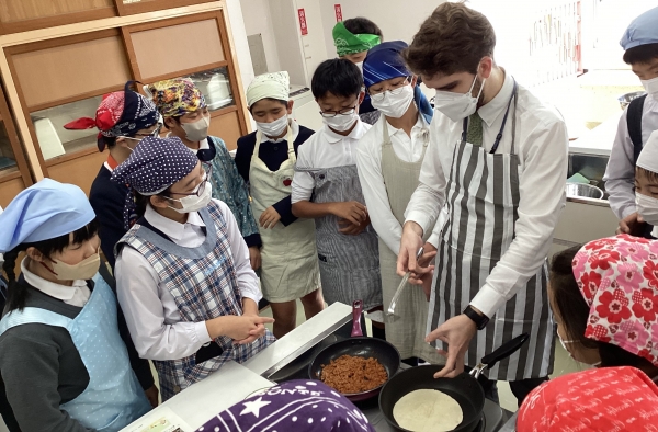 火が通るまでの待ち時間に、掲げてある世界地図を見ながらメキシコの場所を確認している人もいました。様々な国の料理を通して多くの世界の国々への興味や関心を深めてくれたらうれしいです。