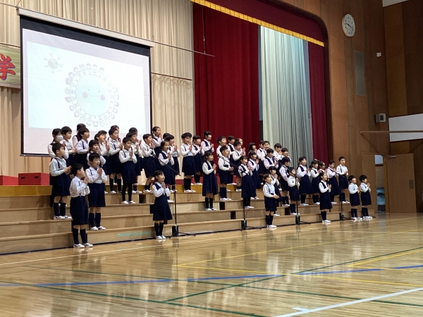 この3年間、各学年で行ってきた学習発表会でしたが、今年度は二部制で実施しました。各学年が一年間の学びの聖歌を、より多くの方々に見てもらえる機会を設定できることは、とても喜ばしいことです。ここ数年、多くのことに制限が加わり、遠くに届く声で話をしたり歌ったりする場面が、学校現場でも少なくなっていました。今年度は、その制限が緩和され、徐々に本来の子どもたちの姿が戻ってきたように感じています。