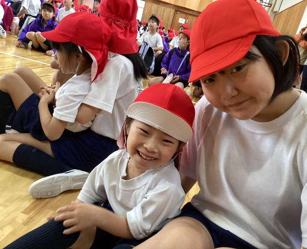 歓迎集会では、お兄さんお姉さんたちの出し物の後、猛獣狩りに行こうよならぬ”歓迎遠足に行こうよ”を全校で行いました!1年生もお兄さんお姉さんたちと楽しそうにしていました。