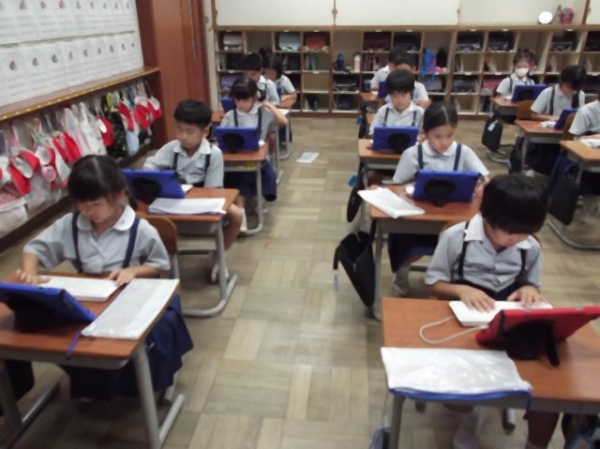 今日はタブレットとキーボードを使ってタイピングの練習を行いました。初めてのタイピングの練習に興味津々の子どもたち。指使いも気をつけながら練習を行いました。楽しくタイピングの練習に取り組めた子どもたちでした。今後も少しずつタイピングの練習を行っていく予定です。