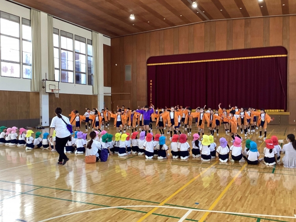 今年から中学年の仲間入りをした3年生。学校生活ではまだまだ可愛らしい姿をたくさん見せてくれていますが、今日は一転お兄さんお姉さんとしてしっかりした姿を見せてくれました。南山小学校伝統のヨサコイをかっこよく踊り、一緒にボールを使って遊んだり、学校探検をしたりと純心幼稚園のみんなも3年生のみんなも弾けるような笑顔で楽しんでいました。