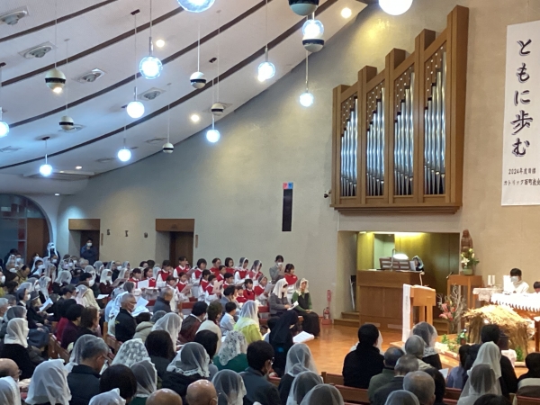 冬休みには、私たちが大切にしているミサでの聖歌奉仕をしました。クリスマスの聖歌は、どれも美しく、歌うたびに心が澄んでいくような気持ちになります。毎年、卒業した先輩たちも一緒に歌ってくれます。そんな思い出が重なるたびに、また、これからも頑張ろう、すてきな歌声を届けたいという思いが強くなります。