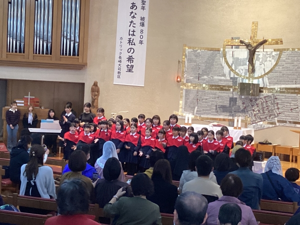 長崎南山小学校 コーラス部 第19回~チャリティーコンサート~能登半島地震で被災された方々へ~歌をとした出会いを大切にしながら、「私たちの歌声が誰かのお役に立ちますように」と願いながら創部10年目となる2004年から毎年、ミサでの聖歌奉仕に引き続きチャリティーコンサートを行ってきました。募金していただいた107,630円は大切に送らせていただきます。ありがとうございました。