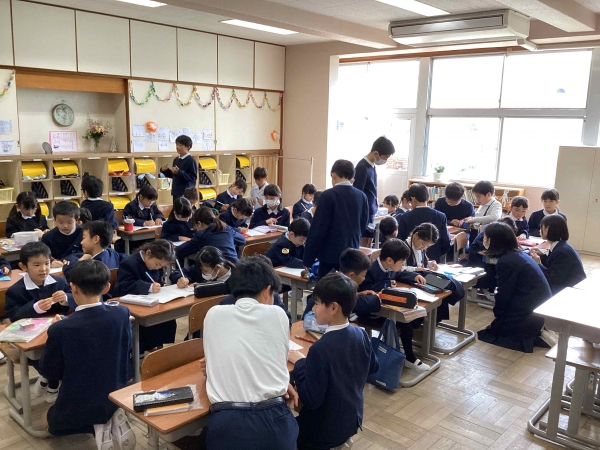 1年生の1日が始まりました。今日は、1年間仲良くする6年生のパートナーとの顔合わせがありました。はじめは少し緊張していた1年生も、優しく声をかけてくれる6年生のお兄さんお姉さんのおかげで、すっかり仲良しになることができたようです。明日からたくさん遊んだりお喋りしたりして、ますます仲良くなってくれることでしょう。