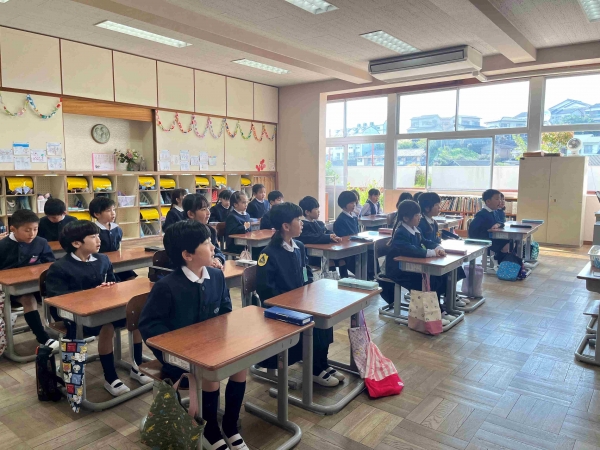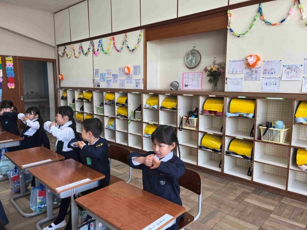 まずは「よい姿勢」で座る練習です。みんなで「足はぺったん…」と言いながらよい姿勢で座ることができました。