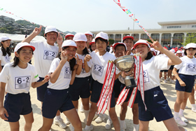 赤白対抗の運動会は、大きな行事の一つです。赤も白も力を合わせて精一杯頑張ります。