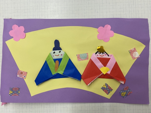 ひな人形製作では、折り紙を使ってお内裏様とお雛様作りをしました☆