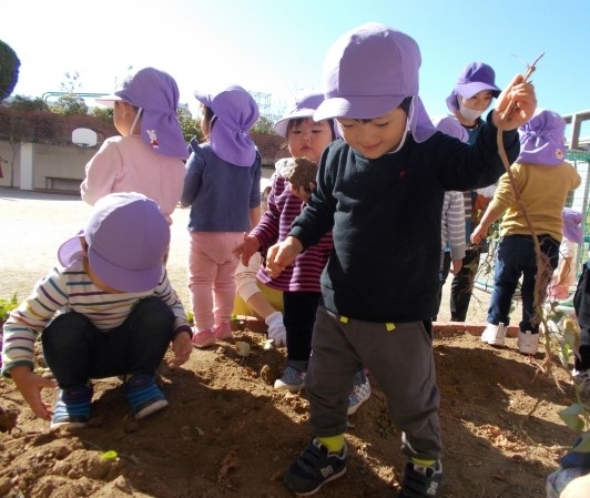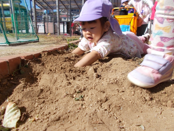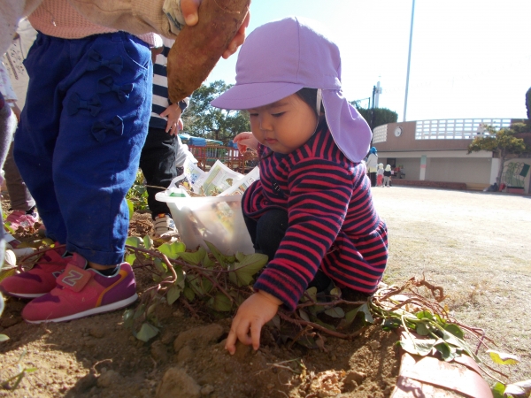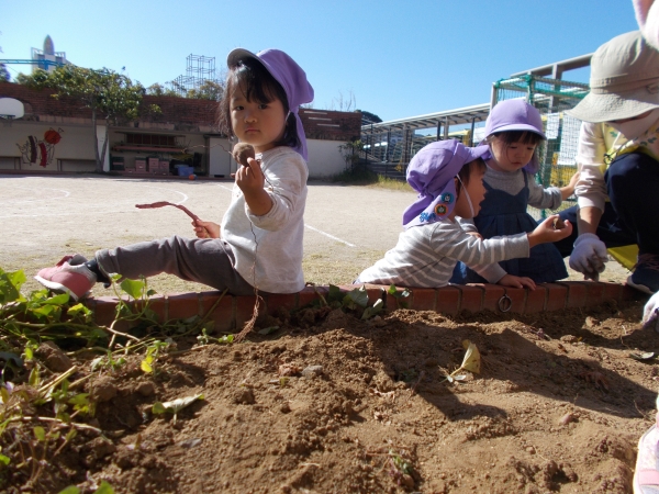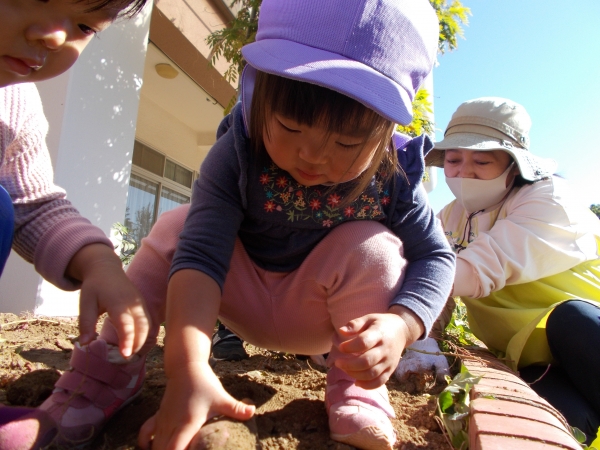 砂遊びが大好きなすみれ組さんは、お芋がなくなっても長いこと土いじりを楽しみ、