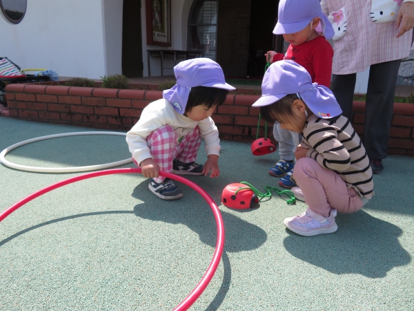 この1週間、天気がとても良く、園庭や教会前の広場でのびのびと遊びましたよ!!