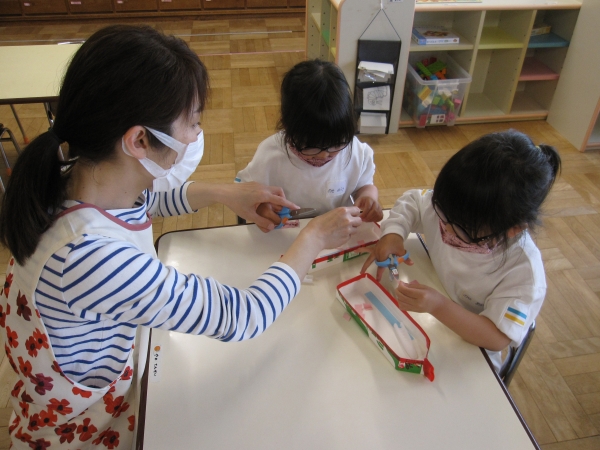 はさみを使う時のお約束や持ち方について話をするとみんな真剣に聞いていましたよ!!