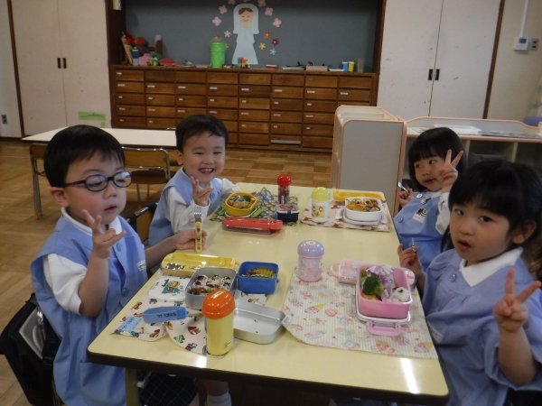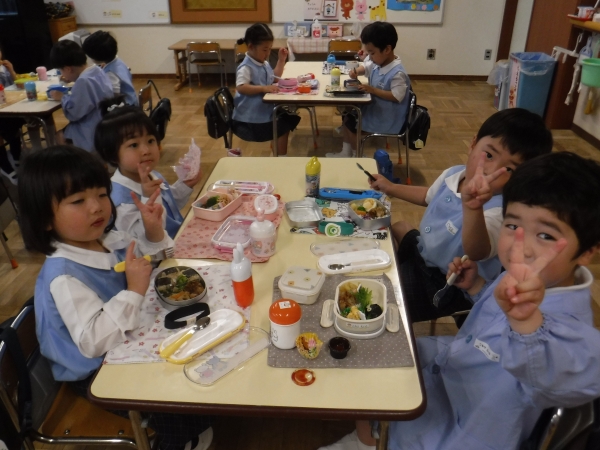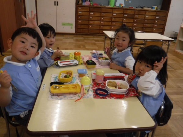 今日は年少組になって初めてのお弁当の日(*^-^*)