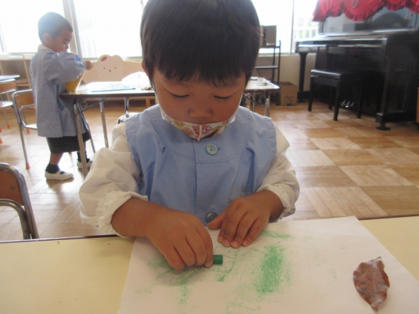 そこで今回はみんなで拾った葉っぱを使って写し絵に挑戦しました!(^^)!