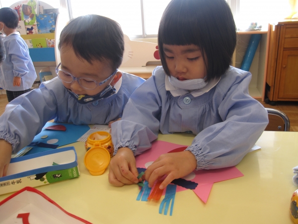 のりの使い方も上手になり、のりを使う量や塗り方などを意識しながら