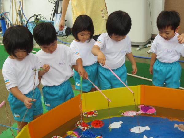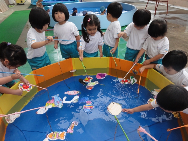 小さなプールで魚釣り遊びをしました!