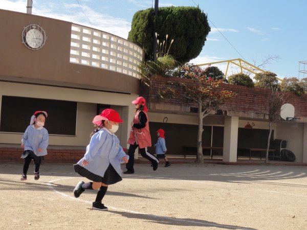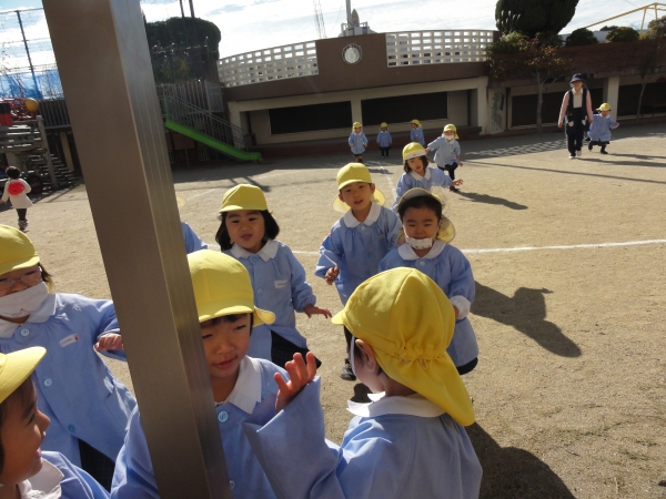 太陽が見えると「お外で遊ぼう!!」と元気に園庭へ出かけます。