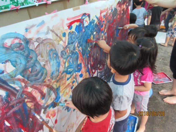 思い思いに、大きな模造紙に絵の具を塗りました!(^^)!
