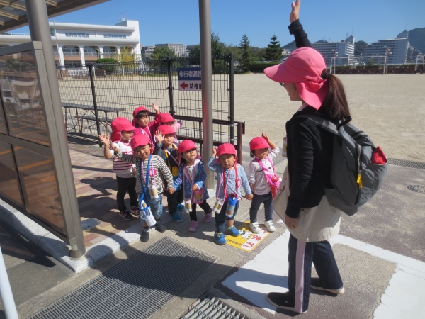 子ども達が大好きなお散歩。今日は、おやつを食べた後に、双眼鏡で虫を探して遊びました!