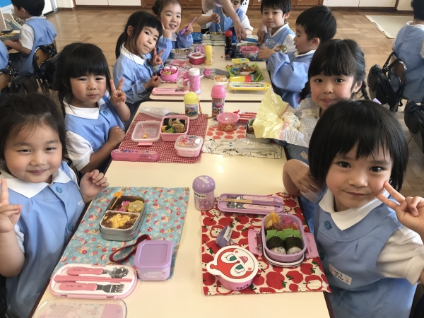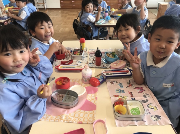 お弁当をニコニコ笑顔で広げ、ペロッと完食