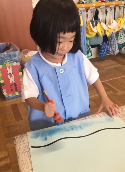 今月は、タンポとはさみとのりを使って≪ヨット≫の製作を行いました!