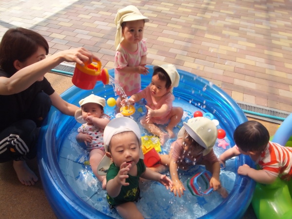 7月10日のプール開きを迎えてから、みんなで元気に水遊びを楽しんでいます!