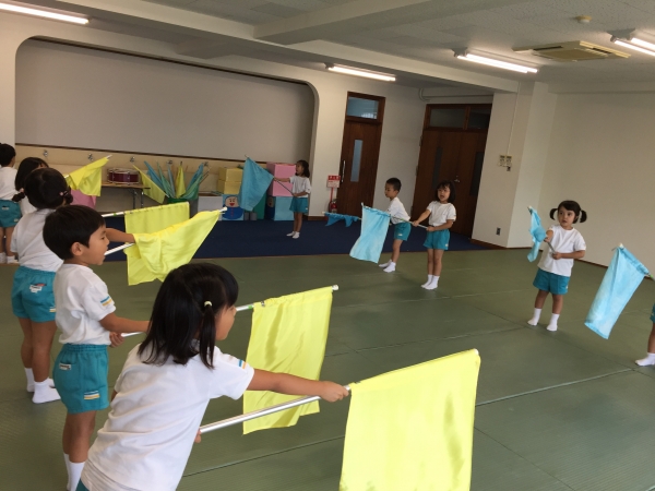 今年の年長組は、運動会でフラッグ&ガード隊に挑戦します‼