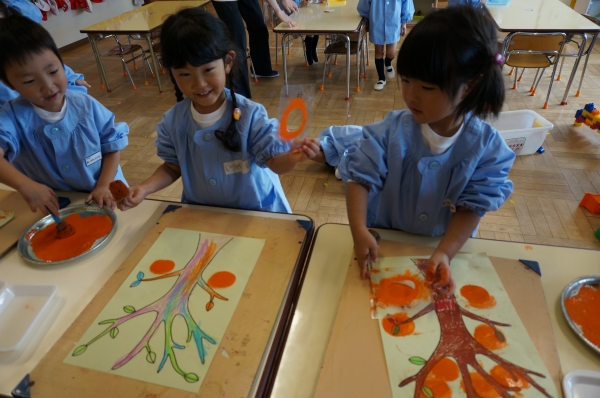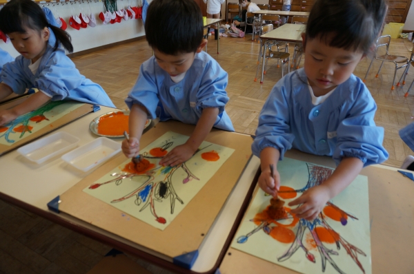 絵具がついたタンポで、ポンッ!ポンッ!ポンッ!