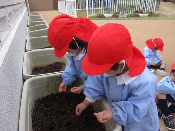 子ども達の手に種をのせると、大事そうにじーっと見つめていました(^_^)