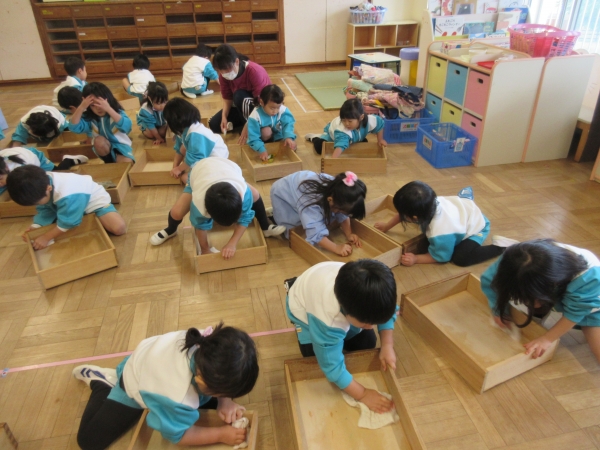 開始の前に「2学期の間、沢山お世話になったお部屋に、ありがとうの気持ちを込めて、綺麗にしようね」と声をかけると「頑張るぞー!!」と子ども達はやる気満々の様子でした☆
