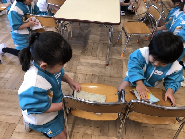 そこで今日は、毎日お世話になった保育室の椅子や机、お道具箱などを